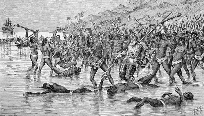 The greatest city of the Islamic Golden Age is under siege. It’sthe bloody Mongols, would you believe it? Well, yes. As a seasoned era-hopper in TimeSplitters: Baghdad To The Future, you have seen the Mongol army everywhere. This time they’re in the middle of razing the city’sHouse Of Wisdom, the Dar Al-Hikma, a huge multi-wing library that has been the centre of worldly knowledge for two centuries. Fight in vain as the Mongol’s break into thebeautiful round city, and escape in a rowboat as the Tigris beneath you runs black with ink from the destroyed books of the library. That’s a sad level.