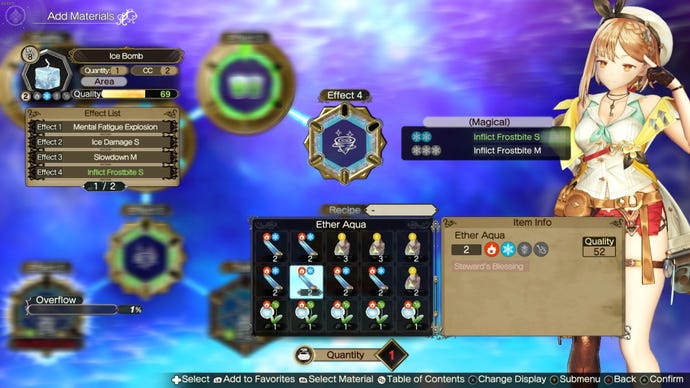 But now cut to Ryza’s cauldron smashing through the door. Against all odds, this large pot was what kept me coming back for more. It lets you transform ingredients you’ve gathered out in the world - like sardines, ore, and plants - into increasingly powerful items: anything from some healing beans, to a new staff. All of this is presented via a dizzyingly complex crafting menu, and a skill-tree so vast I genuinely get lost in it sometimes.