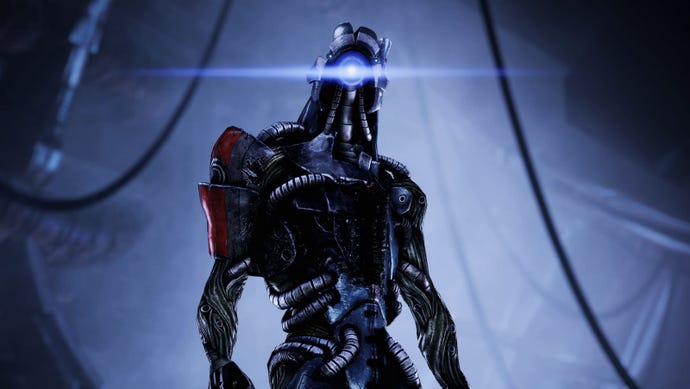 If you look closer, you can just about make out what looks like the body of a dead geth in the light section under the “eye” area. Zoom in even more, and it looks as though there are more geth bodies (or perhaps husks?) right beneath the blue of the eye as well. It’s too soon for this to be a hard confirmation of anything, but it’s another suggestion (afterthat teaser trailer with Liara) that this new Mass Effect will be linked to Shepard’s trilogy - there were no geth in Mass Effect: Andromeda.