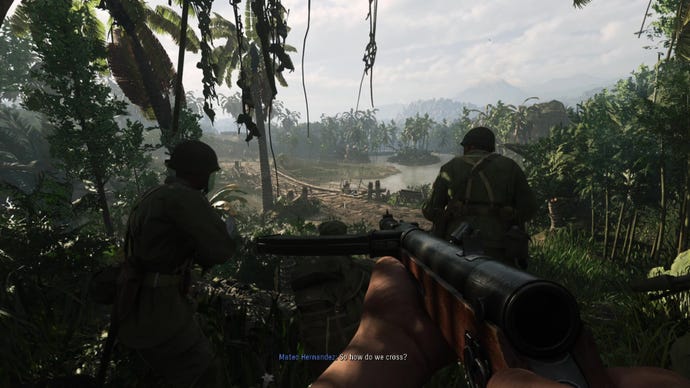 And even when Vanguard’s mixing things up, it’s doing them in ways we’ve seen countless times in past Call Of Duty games. When it wants to slow things down, your character will get caught in an explosion and awaken to a soldier dragging you to your feet. Or you might have to follow someone’s lead as you skulk around some enemies. If there’s a budding bromance, it’ll likely end with your mate taking a bullet to the chest. Tick, tick, and tick.