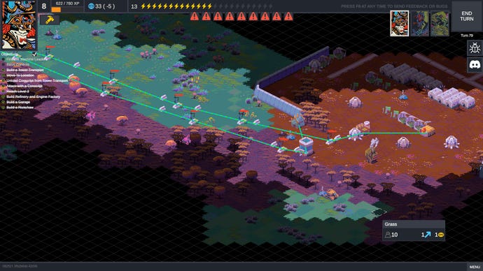 That superb aesthetic is still there, although I’d say it’s now drifted closer towards Dune, along the scale of SF you’re allowed to like and still think of yourself as highbrow. Is the actual game any good? Well… probably. It’s certainly interesting; the Advance Wars DNA is still very much in place, and has been combined with a set of supply chain mechanics more familiar from factory games than anywhere else. Together, they make for a tactical experience that’s unique, surprisingly complex, and brutally, crushingly slow.