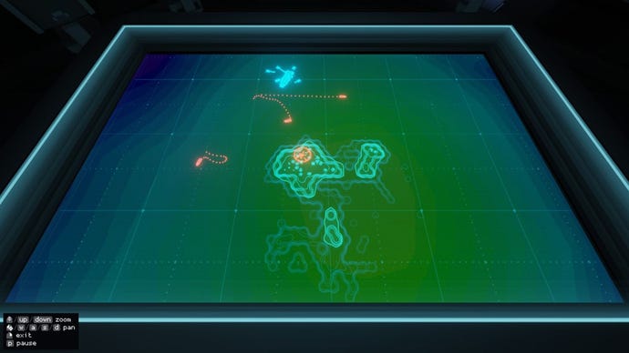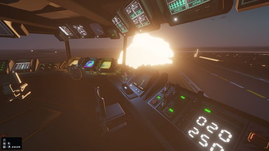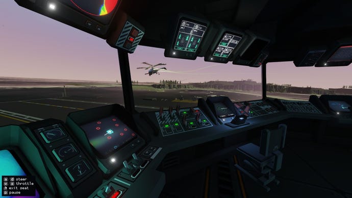 Strategically, anyway. Practically speaking, what you will be doing is flicking switches, peering through binoculars, and switching off the monitors you’re not using because you’re energy conscious and then forgetting which one does what when you need them again, because you’re also an idiot. It is, like last week’sHighFleet, big on diagetic interfaces, although as with that game, sensible concessions are made when it comes to the action sections. Because, you see, you’re not just pushing icons around the map or watching helplessly from the bridge as another helicopter jinks directly into an oncoming missile. No, any time your drone vehicles are off the ship, you can connect to them remotely, either to passively supervise and spot from a circling recon ship, or to actively take over control, and crash into as many missiles as you damn well please.