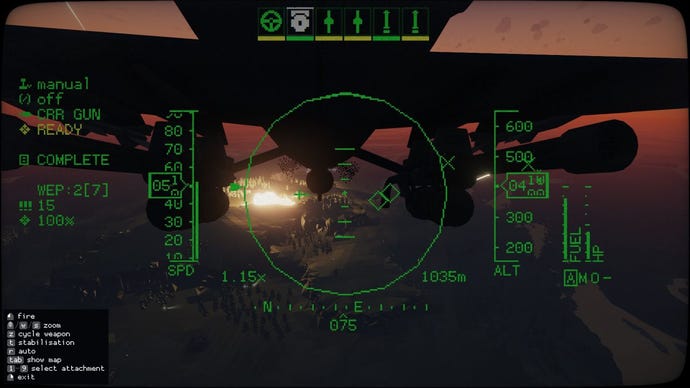 This is not the action-first interpretation of Carrier Command’s other descendantHostile Waters, though. Most of your work will be co-ordinating and planning and tweaking orders, and when you do take the wheel, you’ll be greeted with a sim befitting the original. Ground vehicles are simple enough (and amphibious, the one case where Hostile Waters was actually a lot fiddlier) to handle, although you’ll still need to pay attention to the rangefinding readout once it’s tank time if you want those shots to count. Aircraft, however, are a game unto themselves, and probably the biggest roadblock to anyone wanting to dive in.