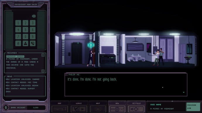 I had a soft spot for Rupert Zhou, a smug, always-smoking fixer for the ultra-rich, because he was funny and relaxed; Sergey, a hacker who was my first hire when I expanded the agency, will be forever in my heart. Even your hint system is a friend, a peppy librarian who loves codes. These and other key characters are voiced (superbly) for important scenes, drawing you further in to a completely 2D world.