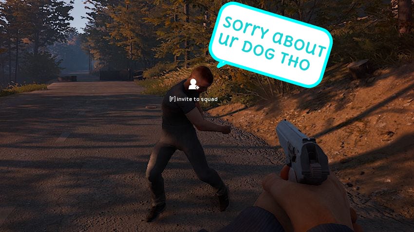 Deadside players will commiserate over a dead dog and then stab youEvery dog has his DayZ