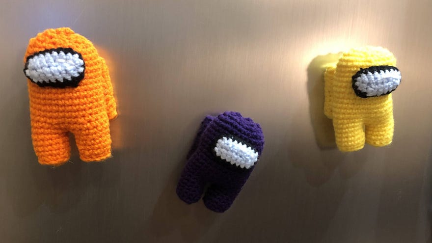 I think the popularity of Among Us “amigurumi” (for so these little stuffed figurines are named, after the Japanese art of crocheting little creatures out of yarn) is that a) the Among Us spacebeans are somehow very expressive in spite, or perhaps because of, their blank features, b) they are very cute little fellows, and c) they are an easy shape to fashion out of, well, most things. Crochet would be my go to, but you could also make a crewmate out of mashed potato or hair collected from brushing your cat. That would be weird of you to do, but I’m not judging you, I’m just saying, youcoulddo that.