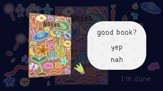 Take noteThe sticker mini-game makes a return, and I spent twenty minutes making my notebook as cute as humanly possible. My goal, if you can’t tell, was to try and stick as many on my notebook as I could. What do you think?