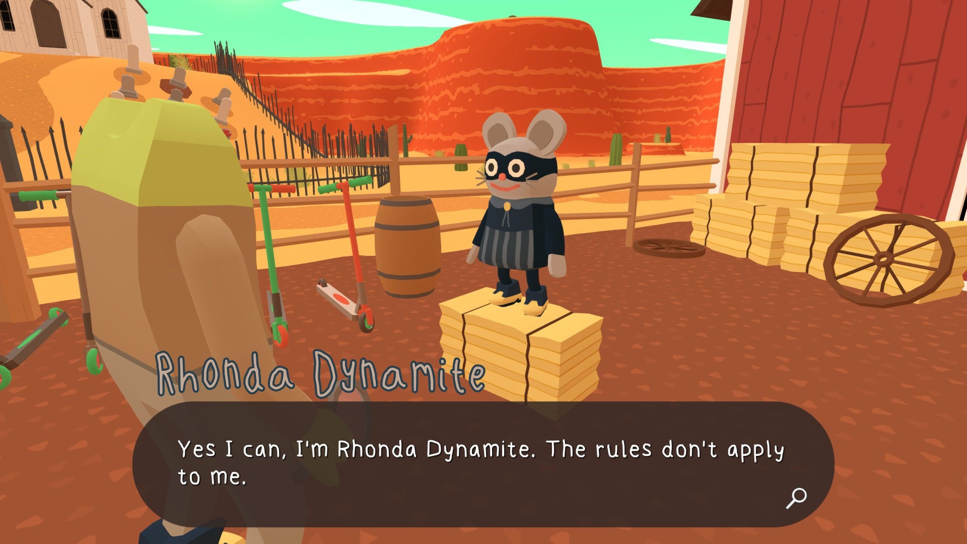 Frog Detective needs to help the animal residents of Cowboy County with their problems in exchange for clues and snippets of information about the hat-snatcher. Anyone and everyone are suspects, no matter how friendly and cute they are (major respect to Frog Detective for their diligence). You have your trusty notebook for scribbling down character profiles and case info, as well as a rad scooter that you can ride around town. Frog Detective is also geared out in some brand-new cowboy booties; they do nothing except make Frog Detective look even more dashing than before, but this is important.