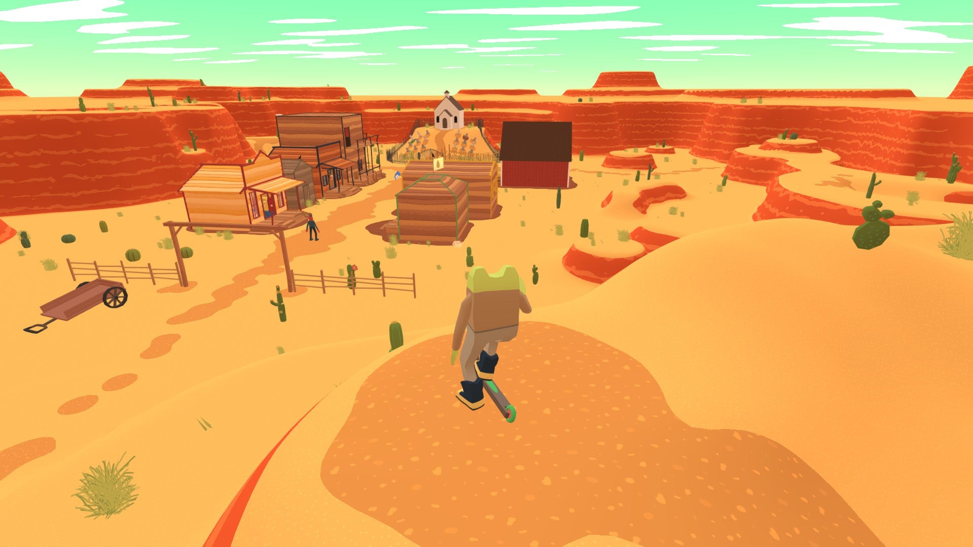 Conversations have the perfect balance of mundane and bizarre, and it’s impressive how every character is funny in their own distinct way. Meeting each person is always fun, and helping them gathering ingredients so that they can make a stew, or create the perfect portrait of themselves, or learn important life lessons, all contributes to the silliness of the humour. Cowboy County is also a bigger area than the first two games, but with the town only consisting of one street with a handful of buildings, much of it is open space, perfect for unleashing some epic scooter tricks around when you need a break from detecting.
