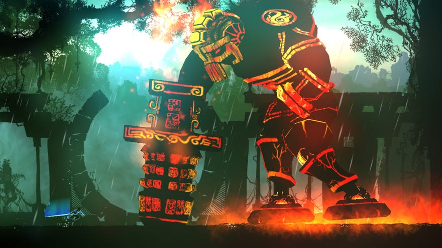 It isn’t all about being aggressive, though: playing with colouration is a must for getting around. You’ll fall straight through blue platforms if you’re wearing your red skin, and vice-versa. Some of the more complex platforming sequences that pop up can test your patience, but, again, you feel like some sort of glowing god when you reach the end of one of these tougher sections.