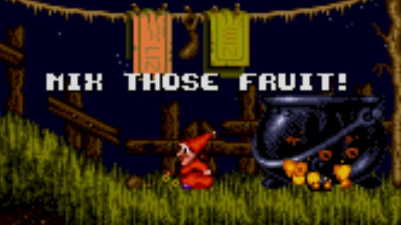 But the best bit of the game was the cauldron. During your lagomorph retrieval dashes, you would end up collecting fruit of many kinds (or “of diverƒ sorte”, as a medieval wizard might say), which you would then sort through at the end of the level, chucking items into a cauldron to produce magical effects. There wereloadsof potential outcomes, from points and in-game bonuses, to sudden minigames, weird visual effects (one turnedeverythinginvisible), and even a fakeout “game over” screen. In fact,here’s an ascii FAQ from 1995 with them all. They were seriously creative.