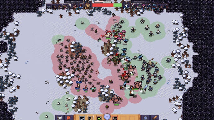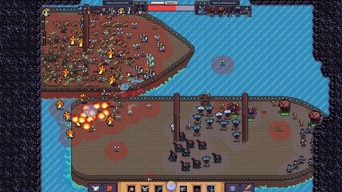 I don’t know what to make of it. It dubs itself an RTS but locks its map movement to turn-based limits. It has an impressive diversity of angry little fighting dudes, yet mostly automates the battles in which they fight. It has a lot of management to do and yet the UI is woeful, all the menus and pop-ups retaining a spartan prototype font. The result is a chaotic, messy, yet characterful take on map control, one that seems built to eliminate worries about whether you’re performing enough actions-per-minute, while keeping other traditions of steamrolling your enemy into submission.