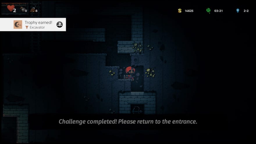 Once you hitSpelunky 2’s second world, you’ll be able to take on the Moon Challenge in order to obtain the Excavator trophy. It’s not particularly self-explanatory though.Here’s how to complete the Moon Challenge in Spelunky 2.How to complete the Moon Challenge in Spelunky 2You’ll find Tun, the proprietor of the Moon Challenge, early in world 2. She can show up either in the forest or lava versions of the world. She’ll ask you for $10,000 in return for taking on the Moon Challenge, so pay this and head into the door behind her.The Moon Challenge is super simple, although you aren’t told the actual goal of it. Here’s the objective:reveal all the rooms available in the cave network.The challenge won’t end until you’ve broken the Mattock given to you at the beginning, so keep on digging and find as much gear as you can. Often, you’ll be able to earn back the cash you spent for the challenge, especially if you have the Spectacles or Udjat Eye equipped and can see gems hidden within the level. For an ever-growing list of items you can get in the game,head to our Spelunky 2 items guide.You can also use bombs here to maximise the amount of space you reveal, but be careful - it’s easy to end up stuck with no way out if you don’t have any leftover ropes.Moon Challenge rewardsOnce you complete the Moon Challenge you’ll earn the Excavator trophy/achievement too, so it’s well worth doing this mission once if you haven’t already.Watch on YouTubeAs well as this, you’ll find the crossbow, which fires a single bolt extremely accurately to one-shot most foes. There’s also the big wedge of gold and money you can get from digging, both from within the dirt and in boxes and chests all over the place.We have more Spelunky 2 guides if you’re struggling with the game too, including ourSpelunky 2 beginner tipspage, as well as our look at theturkeys in Spelunky 2.