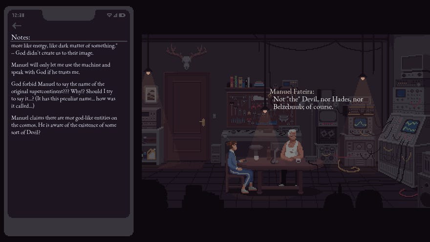 An old man in Northern Spain claims to have a direct line to the divine, and you’re off to see if he’s legit.Interview With The Whisperer, a free short story from the creators ofThe Red Strings ClubandThe Bookshelf Limbo, is a wonderfully intimate conversation with a distracted old man and - if you’re lucky - the cosmic supernatural entity on the other side of his short-wave radio.Framed as an interview with this distracted messenger, The Whisperer uses a kind of Chatbot interface to let you ask the old man anything you want about his machine, his life, and the divine on the other end of the phone. At the side are your notes, occasionally prompting you to dig deeper into various topics.What’s the deal with these recurring dreams, for instance. Who’s this Dolores lass he’s always on about, and what, exactly, can he tell you about God?I did ask, for the record.To be a bit navel-gazey, The Whisperer had me thinking a lot about my own 2019 game Can Androids Pray. An unintentional response to a line (occasional RPS contributor) Xalavier Nelson Jr penned for it that asks whether God hears circuits or simply “drowns out the buzzing”. Deconstructeam posit that not only can they hear them, but that these cobbled-together wavelengths are the only way for us to communicate with the divine - and that God may be somewhat underwhelming, all things considered.It’s just a shame, really, that the whole chatbot angle falls apart faster than I’d like. There’s a shocking wealth of conversation to be had with the old man - and for a time, I felt like even the misunderstandings played off well as odd diversions from a strange man. It’s a limitation the game even recognises, with a third character stating at the outset that poor Manuel isn’t too great at holding a conversation. But after a while, the same stubs came back over and over, and I found myself wishing for the predictable simplicity of a conversation tree.Pick the right words, though, and you can untangle a loving, quiet conversation with a doting old man who happened to pick up God’s phone number. Interview With The Whisperer is free to download over onItch.io.