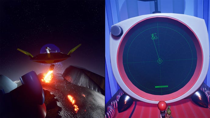Part of the Moon Baboon boss fight: May is flying the spaceship, while Cody is working the targeting systems.