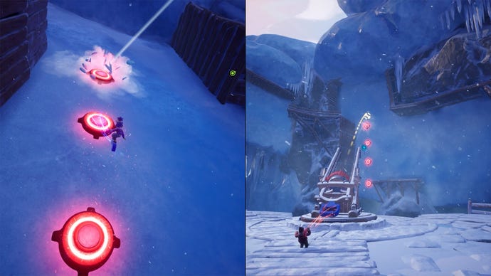 Here May is flying to magnetised pads while riding a magnet of the opposite polarity, and Cody is shooting the pads into place for her.
