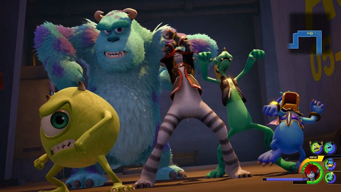 Upon arriving in Monstropolis you’ll notice that Sora and the gang have undergone quite the transformation. Into the factory they go though, where they quickly meet Sulley and Mike.