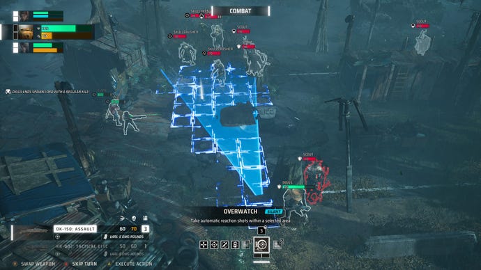 Having said all that, however, once you do get into the tactical meat of the game, especially after the first third, Miasma Chronicles is often as enthralling and deliciously challenging as you may hope. Once every character (a couple more join later who can be swapped in to replace Jade) has a few skills and passive boosts unlocked, those long cooldowns aren’t quite so punitive. Instead, you plan rotations between the members of your three-strong squad, taking it in turns to cover overwatch, say, or ripping a tough guy’s armour away with one shot so the others can make hay with ordinary attacks.