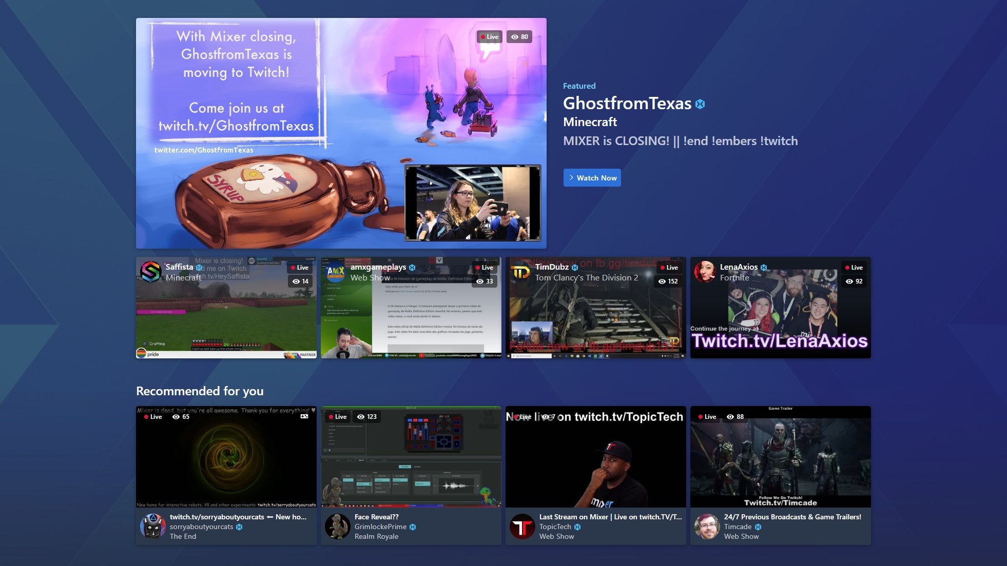 “Ultimately, the success of Partners and streamers on Mixer is dependent on our ability to scale the platform for them as quickly and broadly as possible,” Microsoft said inthe shutdown announcementin June. “It became clear that the time needed to grow our own livestreaming community to scale was out of measure with the vision and experiences that Microsoft and Xbox want to deliver for gamers now, so we’ve decided to close the operations side of Mixer and help the community transition to a new platform. "