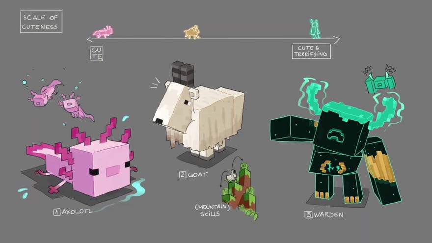 “With this mob we really wanted to make sure that we recapture that feeling of the first night of Minecraft,” Pearce said. “We can often forget that Minecraft can be a pretty scary game, so we wanted to make sure that we go back to that. I mean, caves can be scary, they’re dark, and all I’m gonna say is that when you go into the deep dark, I wanna make sure that you’re very quiet and watch closely for The Warden.”