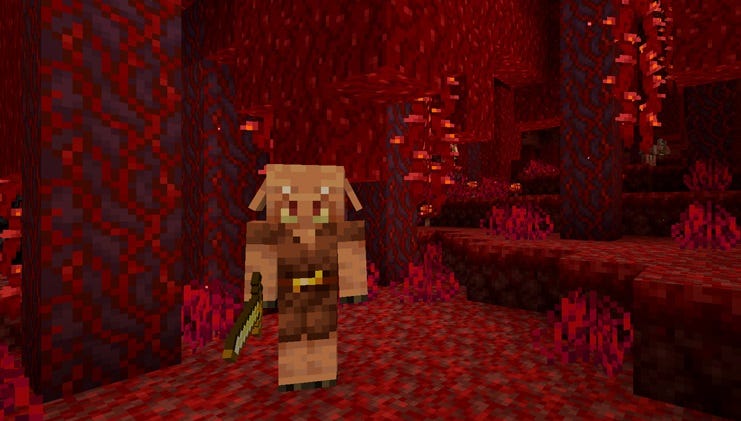 Naturally, most of the new mobs in the Nether will want to kill you. The Hoglins are hostile mobs that you can capture and breed for food if they don’t murder you first. Piglins are humanoid mobs that will attack you with sword and crossbows. Apparently they love gold so much that if you wear gold armor they’ll be passive and open to trade with you in exchange for gold ingots.