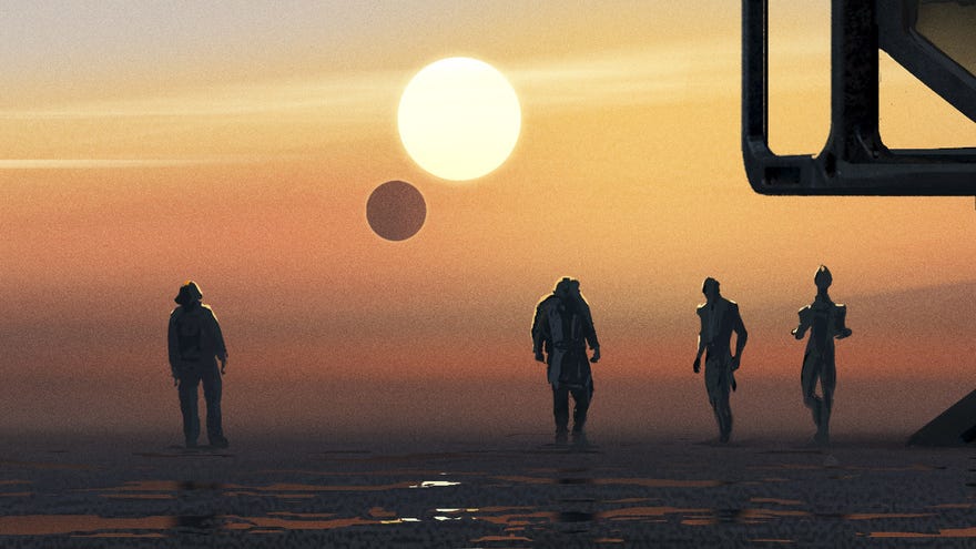 Hello and welcome to the corner of the RPS Treehouse where we sit and chant, “Mass Effect!Mass Effect! Mass Effect!” to will news about BioWare’s sci-fi series into being. This week, our dark magic has summoned three (3!) new images of some lovely artwork for the next Mass Effect game, whichthe developers revealed they were working on during their N7 Day celebrations.Oooh but what can we decipher this time? Well,I already said it about the first teaser image, but I reckon these new ones even further suggest thatMass Effect 5will be a sequel to Andromeda.Posted toTumblryesterday (thanks,Eurogamer), these three pieces of artwork are from a new coffee table book, BioWare: Stories And Secrets From 25 Years Of Game Development (published today in the US for$46). The post says they came alongside the first “mud-skipper” image (above), and a subheading that reads: “A look at the next Mass Effect.“Take me home, FTL roads.This pic looks a whole lot like a Mass Relay under construction. Mass Relays are the big space structures that allow ships to fly from system to system without taking centuries to do so. There are loads of them in the Milky Way in the Mass Effect trilogy, and the prospect that they could be building them in Andromeda is pretty exciting. The MR 7 logo implies that there could be more than one of them, too.If there was some way to build a Mass Relay that would let them slingshot back to the Milky Way from Andromeda, it could even mean a visit to Shepard’s old turf 600 years after we last saw it.Alright, no one can deny these look like Remnant structures.This next image looks so incredibly similar to the Remnant structures found all across the Andromeda galaxy, so that’s it, I’m convinced. Remnant are an ancient race of AI beings you discover, well, remnants of throughout ME:A. They have massive terraforming architecture that looks almost exactly like this, though (spoilers) the end of the game sees it all get disabled.I almost think it looks like some sort of city that’s been built around the huge vaults - maybe even a lasting pocket of Remnant civilisation.What alien species can we make out in this one?The last piece of artwork shows a bunch of silhouettes on a murky planet. It’s such a small image it’s difficult to make out what species we could be looking at. It seems like we’re looking at a lot of humans, though that one in the middle has very skinny legs - a quarian or angara, perhaps?A notable thing about this one is that same spaceship, the mud skipperfrom the first teaser pic, is there on the left. Other than that, I don’t have much (for once). I will say it looks swampy. I’m not a fan of video game swamps, though, so I kinda hope it’s not.Ah but I do love when there’s some BioWare goodness to speculate on. It’ll likely be a while before we actually get any concrete info on whatever this new game will be, but it’s fun to think of all the things Mass Effect 5 could bring.On N7 Day,BioWare also officially revealed the Mass Effect trilogy remaster. Oh so many things to look foward to.