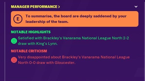 It started with Glenn Walker. 31, well-paid and past-it, Glenn was one of the litany of players I inherited as new manager of Brackley Town, languishing in England’s sixth tier. Glenn would come to be the emblem of how all ofFootball Manager 2020’s systems interact and collaborate to make managing my players’ hopes and expectations a unique challenge that frustrates as much as satisfies. More than ever, they feel like real people, with their own agendas and plans - and will stick the knife into you at any given opportunity.