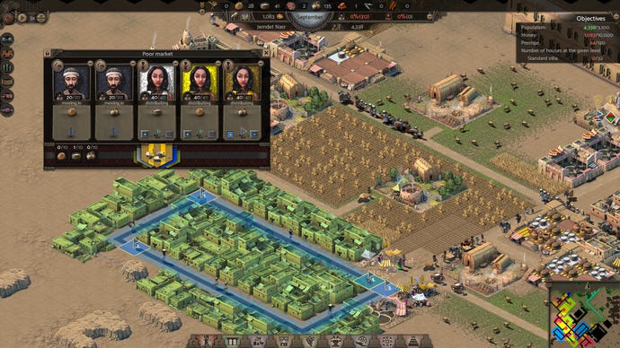 This feature solves a second problem, too, that makes it even more impressive. Later missions in Pharaoh or Emperor often involved long, dull periods of waiting, as your lumbering economy gradually accrued enough of some vital resource to get you through a developmental bottleneck or milestone. That’s the case here too, but no longer do you have to just stare vacantly at the city - you can potter at the design of your monuments, in a lovely construction minigame, as your bakeries and date farms tick over.
