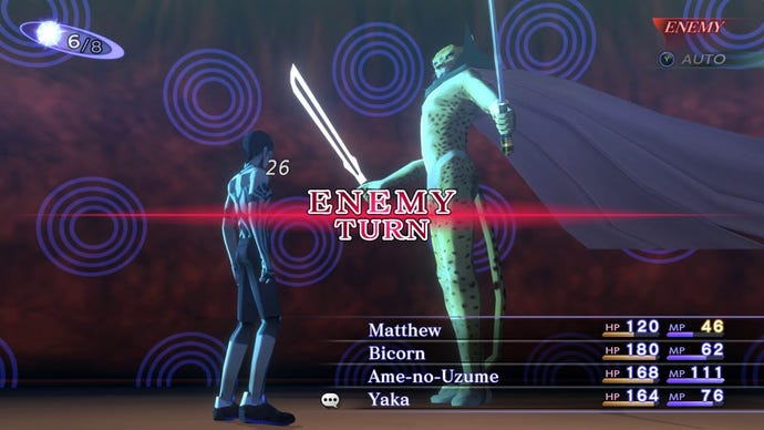 That idea roughly holds up. After the bulging scope ofPersona 5, Nocturne has a laser-like focus. A brief bit of scene setting introduces the five main characters, before one triggers the end of the world and turns Tokyo into a battle for the civilisation that will rise from the ashes. After this you’re rarely subjected to more than two minutes of cutscenes at a time, shifting the focus onto navigating the remains of famous Tokyo landmarks on the world map, descending into dungeons below and stopping for a random battle encounter every 20 steps. It’s a 3DJRPGfrom 2003, in other words, although the addition of an enemy proximity meter at least lets you steel yourself before the next drubbing.