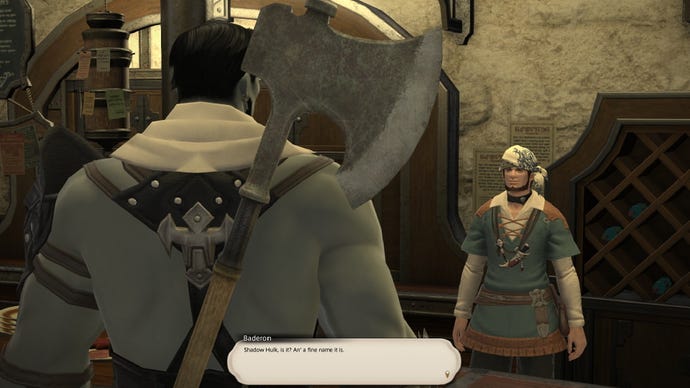 In FFXIV I am “Shadow Hulk”, a grey titan who lives for a fight, but often it feels like I actually roleplay as a barcode scanner, someone whose eyes bleep after I’ve read a paragraph, while my character stands stock-still, eyes unmoving.