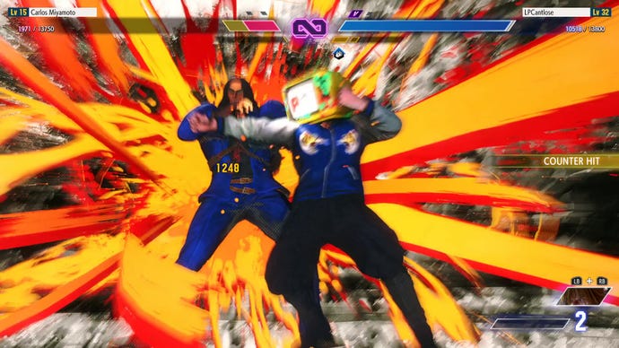 Thanks to whichever wizards at Capcom were in charge of implementing rollback netcode for the game’s online mode Battle Hub, I feel pretty confident saying that, from what I could test, SF6’s online experience feels consistent enough to rival any fighting game currently available. I fought several different players in both the USA and Asia, all the way from here in England, and I never once experienced a single lag spike or any kind of consistent input delay over more than two frames - even when using crossplay to fight opponents who were on console.