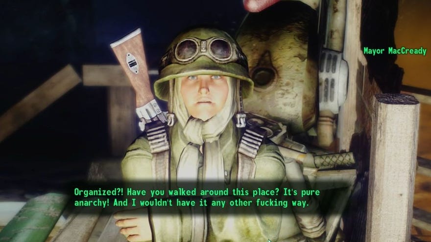 The first words you hear from the children of this horrible cave community contains the phrase: “I’ll blow your fucking head off.” That’s inconvenient. You need to pass through this cavern to continue the main quest, and there is no getting around the posse of ill-behaved micropeople. The insolence of the Little Lamplight kids knows no limit. They do not allow adults into their settlement. They live in some opaque system of high-grade anarchy. They are functionally immortal, and cannot be killed with bombs or knives. That may have something to do with videogame studios traditionally being somewhat squeamish about casual child murder, but it doesn’t change the facts. These kids are invincible, and they are in the way.