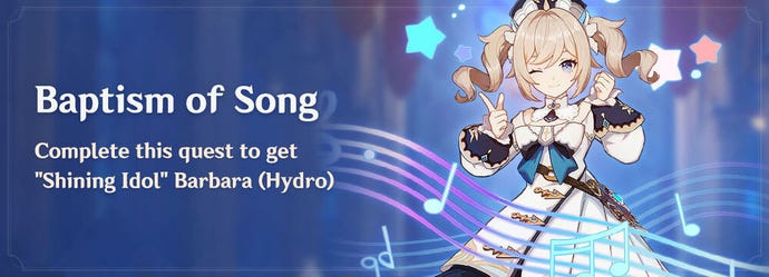 Barbara is also obtainable outside of this event. At 4-star rarity, it’s pretty easy to pull Barbara (so much so that some players have agonized over pulling Barbara on every banner). At the moment, she can be pulled from the gacha on the Beginner’s Wish and Wanderlust Invocation banners, and all Character and Event Wish banners. She’ll also sometimes featured with a boosted drop rate on theevent bannersof 5-star characters, at which point you’ll probably be strugglingnotto pull Barbara.