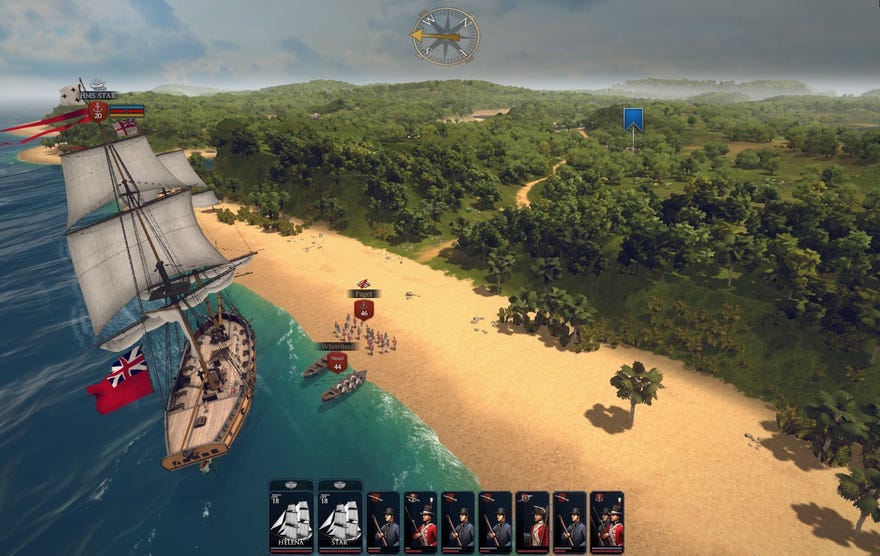 The half of this £34 Early Access offering most in need of thunder lizards is definitely the dry half. As I’ll explain in a minute, the ship scraps are rather good even without plesiosaurs plucking marines off poop decks. The uncharitable thoughts tend to appear after the longboats have grooved beaches - when the lines of soggy-stockinged infantry are trading musket volleys or tramping through jungle and o’er hills. They are essentially the same uncharitable thoughts that slightly tainted my view of Game-Labs' American Civil Wartwosome:why isn’t important tactical information more readily available?… I wish there was something more to this than lots of right-clicking and the odd “Charge!” order.