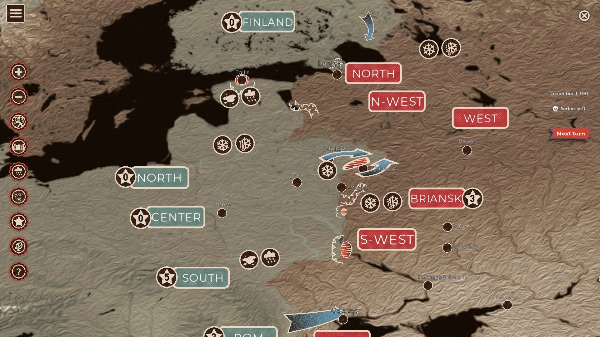 The system ensures believable Barbarossas and manageable ones. In other Eastern Front wargames with fronts that stretch from the Arctic Circle to the Black Sea a single turn might involve 100+ separate decisions. In this one you generally end week-spanning turns after issuing around 25 commands.