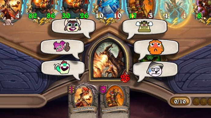 Generally, in the bitter, hyper-jaded world of competitive card games on the computer, you get used to using emotes sarcastically, or even sadistically. The classic “well played”, as an opponent runs face-first into a horrible bit of RNG, is something we’ve all been guilty of. But Sweating Panda never lies. His is a face that tells a thousand eerily similar stories, and there’s never a moment in battlegrounds when I’m not living out one of them.