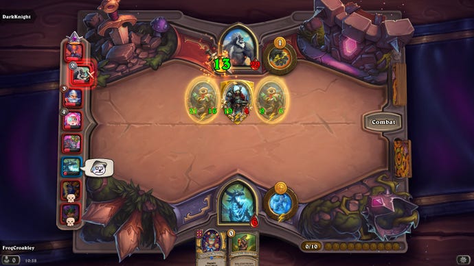 Sweaty P, as I shall now call him, is one of the six emotes in Hearthstone’s autochessy Battlegrounds mode, now so popular there’s a case for calling it the electric card game’s main format. For the uninitiated: a game of Battlegrounds has eight players, who clash with each other using gradually upgraded sets of cards chosen from a central pool. I wrote about ithere.