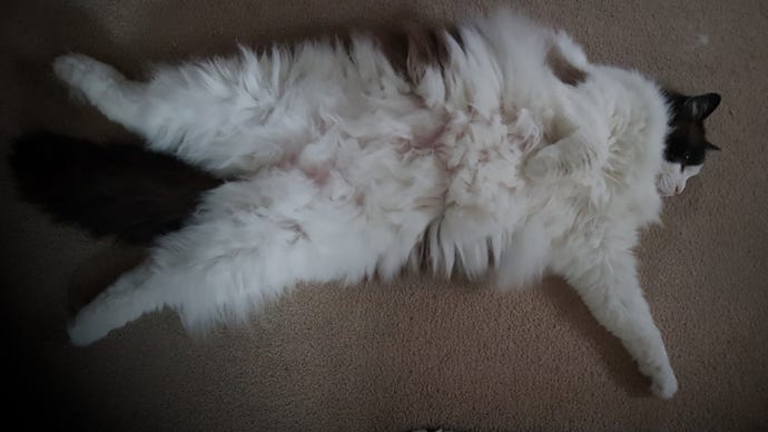That was a bit of a bleak paragraph, and the next one’s quite rough too, so please take this moment to enjoy my cat, Turkey Boy, cosplaying as a spilled liquid.