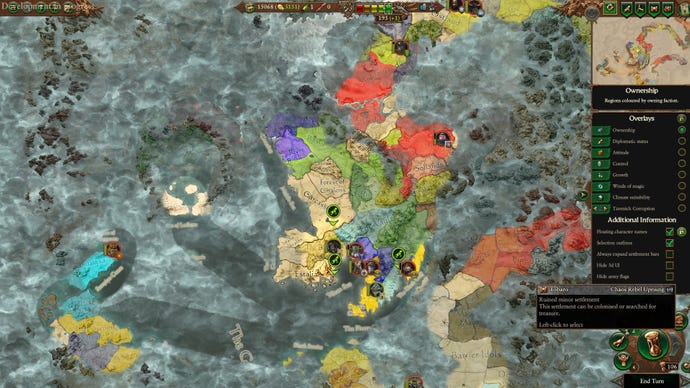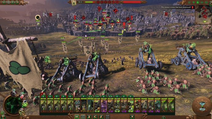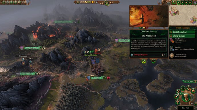 There are some great changes on this front, too. Everyone gets reworked campaign objectives for short, long, and ultimate victory conditions, with the vast majority of the short conditions offering bite-size, leisurely weekend, or long evening-sized campaigns - although there’s currently a possible bug that prevents any sort of win notification, robbing you of confirmation of your Warhammer genius. The customisable chaos invasion has been upgraded to several tweakable end-game scenarios, each spawning a different flavour of hostile doomstack-stack for you to contend with and within a turn window of your choosing. You’ll discover them all the first time you check the menu, but at least one gave me a good chuckle, so I won’t spoil it.