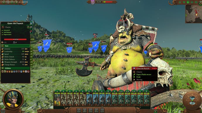 The words ‘End Turn Times’ spur similarly strong reactions in Total Warhammer players as the words ‘End Times’ do for Warhammer Fantasy players, so allow me to soothe your fractured nerves: they’re fine. Good even. About 30-40 seconds, a minute at worst. Part of me wonders if some AI complexity wasn’t sacrificed to achieve this sorcery, but it’s hard to get too conspiratorial during such negligible downtime. The hilariously overconfident autoresolve has taken another balance pass and seems much more sensible now.