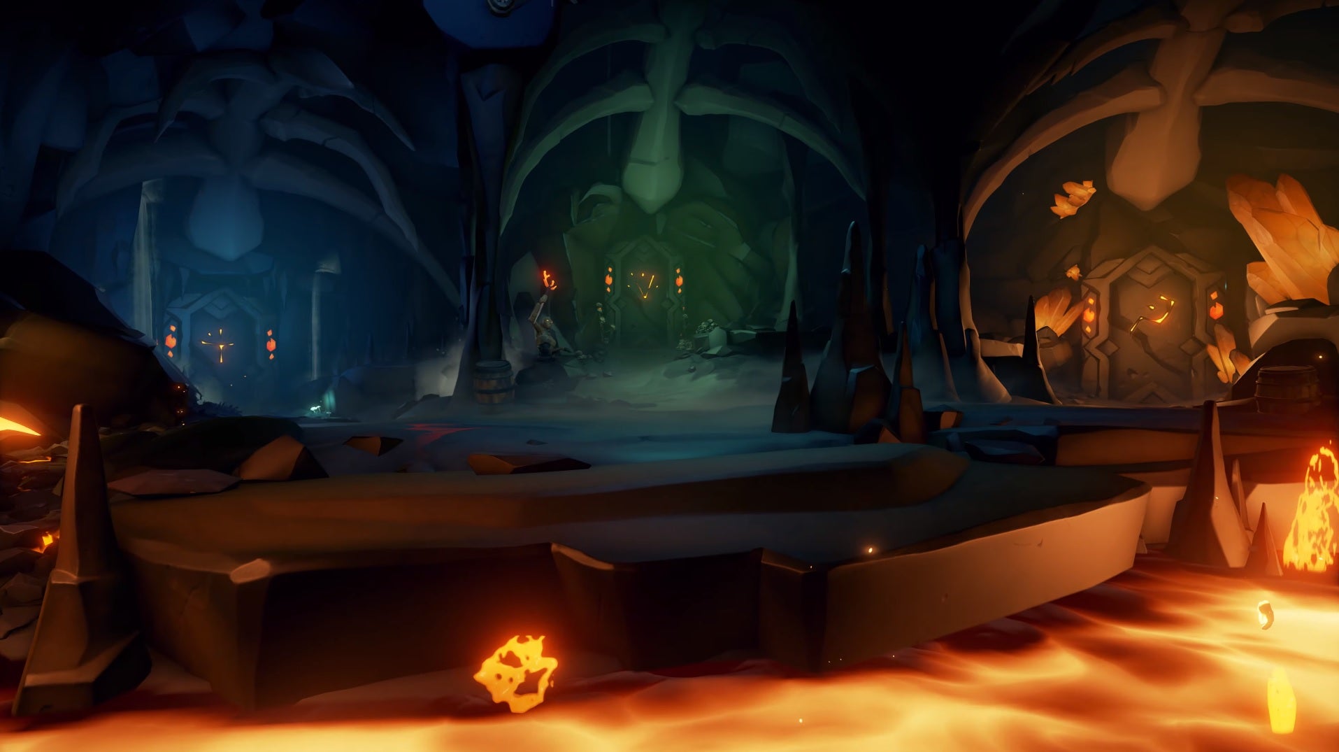 Part of next week’s update is a new Tall Tale—the story-style quests that Sea Of Thieves now has. A big element of that adventure will be traps, Rare say. Some of the fiery variety and some of the slicey, it looks. In the video below, you can spot giant swinging axes, circular saws coming out of the floor, and a heck of a lot of flame jets popping out every which way. The story in Heart Of Fire picks up where the past adventure Seabound Soul left off late last year.