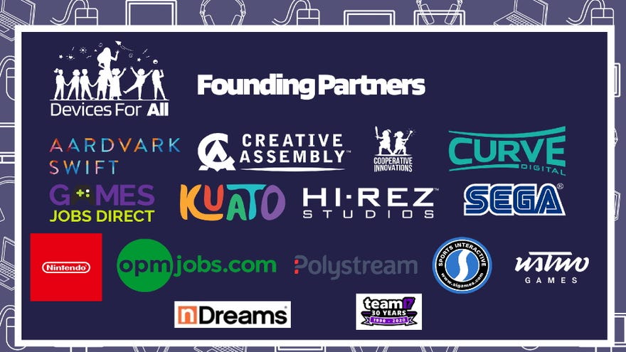 The founding partners of the initiative are: Aardvark Swift, Creative Assembly, Co-operative Innovations, Curve Digital, Games Jobs Direct, Hi-Rez Studios, Nintendo, OPM Jobs, Polystream, Sports Interactive, Team17, and Ustwo Games. A number of companies have already signed up to the campaign as well, including Nintendo, Sega, nDreams, and Kuato Studios.