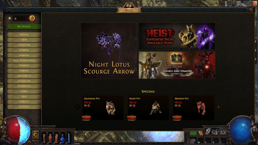 Path Of Exile has the option to purchase extra microtransaction content for your character and game. This ranges from extra content to cosmetics.