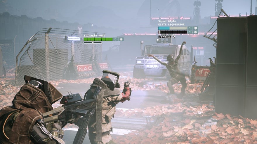 It’s a shame because the less one-sided fights feel terrific when they happen. Basic enemies go down with a couple of hits, blasting people through walls and knocking down their cover with the shotgun (one of a few weapons that can be aimed manually - almost no guns have free aim, and shots count as a binary hit/miss, rather than hitting anything around or behind the target). Limited grenades and remotely detonated bombs make for an occasional very satisfying multiple kill, and I like that you choose a grenade’s effect before throwing it, rather than having to stock up on different types.