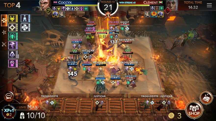 The big difference here is that, in Chess Royale, you’re duking it out against 99 other players, rather than the seven opponents you’ll find in other autobattlers - because this is apparently what ‘royale’ means now. You’d think this would be bullshit. An inalienable part of autobattlers is chance, and in a situation where you’re up against so many other players, it seems inevitable that one of them will be bound to get luckier than you. You’d think victory would go to whoever happened to dip their hand into the old bag o' wizards and pull out the most copies of a hero, but: nope. Not a thing.