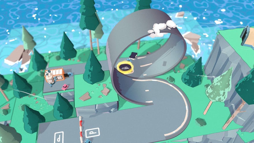 Playing the You Suck At ParkingPAX X EGXdemo, the premise was fairly simple. If you come to a full stop before hitting your designated space, then You,Sir, Suck At Parking. You leave the vehicle you were using behind on the track, and respawn quickly in a new one. This causes problems, however, when you manage to stack six cars around a parking space you can no longer reach.